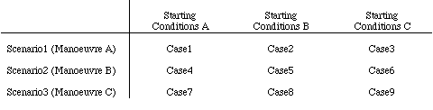 It may therefore be necessary to perform a mini-study to evaluate the sensitivity of the manoeuvre effectiveness due to a change in selected parameter values. A decision as to what parameters are likely to have greatest influence upon the results may then be made to limit the set of cases to be investigated. A more comprehensive study of the reduced set of cases may then be carried out.